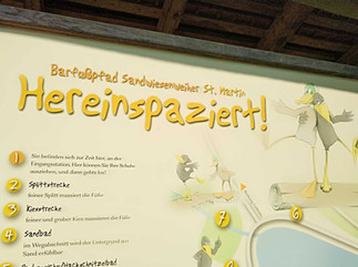 Der Weg zwischen Parkplatz - Haus an den Fichten - Barfußpfad - Grillhütte St. Martin kann mit dem Kinderwagen oder Fahrradanhänger befahren werden. Dafür ist ein kleiner "Umweg" um den Sandwiesenweiher notwendig.