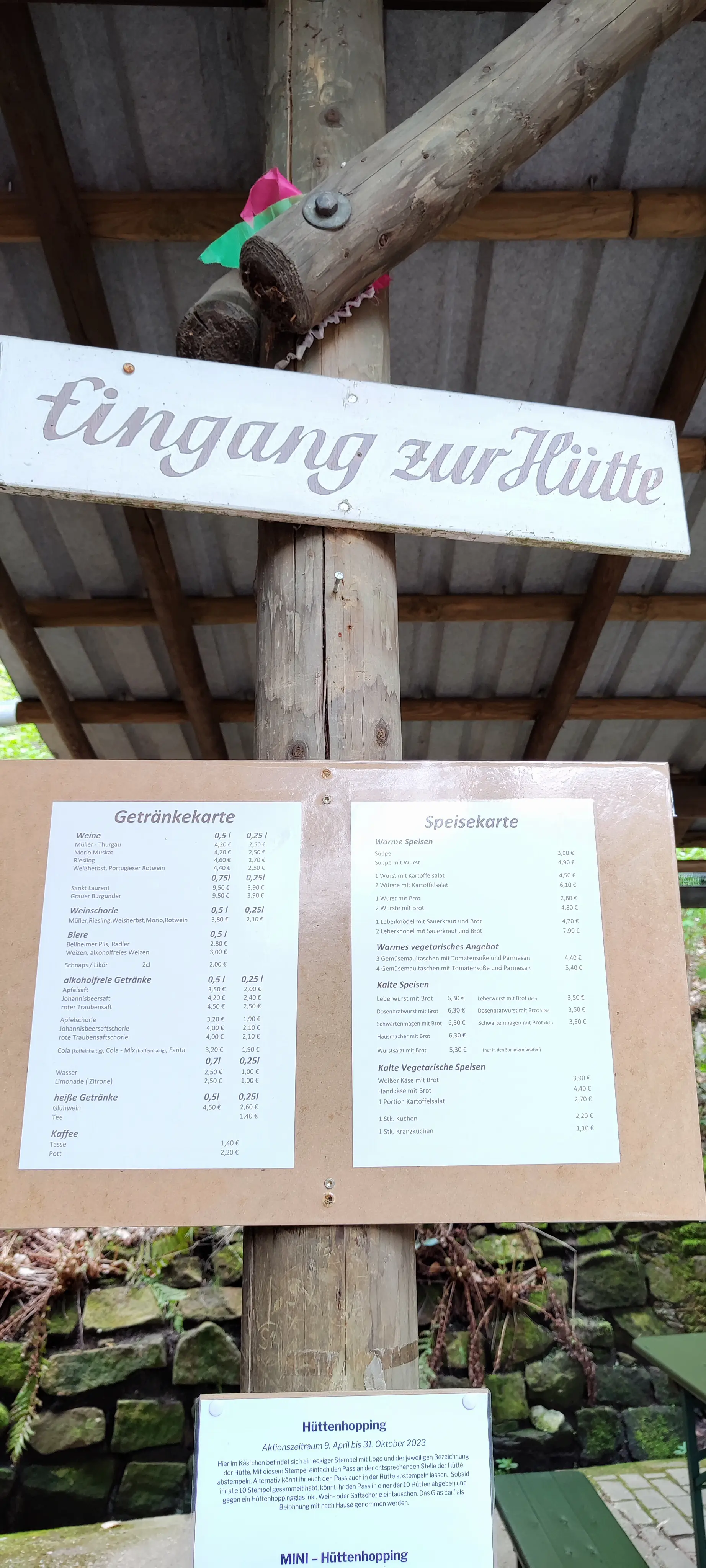 Der Weg ist recht unspektakulär, dafür aber die Schorle an der Nellohütte eiskalt. Hier sitzt man schön schattig auf der Terrasse und kann den Spielplatz mit Wippe und Schaukel im Blick behalten. Die Nellohütte ist sehr urig, aber auch günstig. Es lohnt sich also hier die Mittagspause einzulegen.