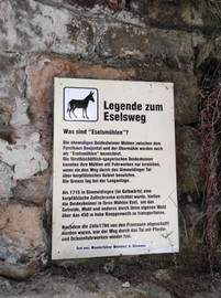 Im Herbst und Winter empfehle ich euch Gummistiefel mitzunehmen. Im Sommer können die Kinder auch barfuß in den Bach, der rote Buntsandstein fühlt sich toll an den Füßen an. Auf dem traditionsreichen Eselsweg kommen wir an den alten Mühlen vorbei und wer sehr aufmerksam durch den Wald geht, entdeckt auch einen alten Mühlstein.