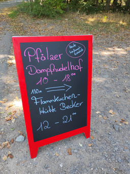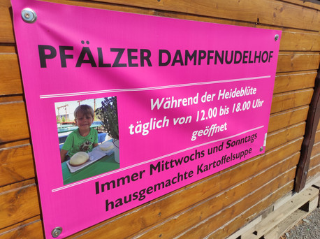Einkehren könnt ihr beim Pfälzer Dampfnudelhof mit Heidecocktails und leckeren Dampfnudeln oder der Flammkuchen Hütte: