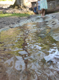 Eiskalt ist das Wasser, das an der Queichquelle ins Kneippbecken fließt.